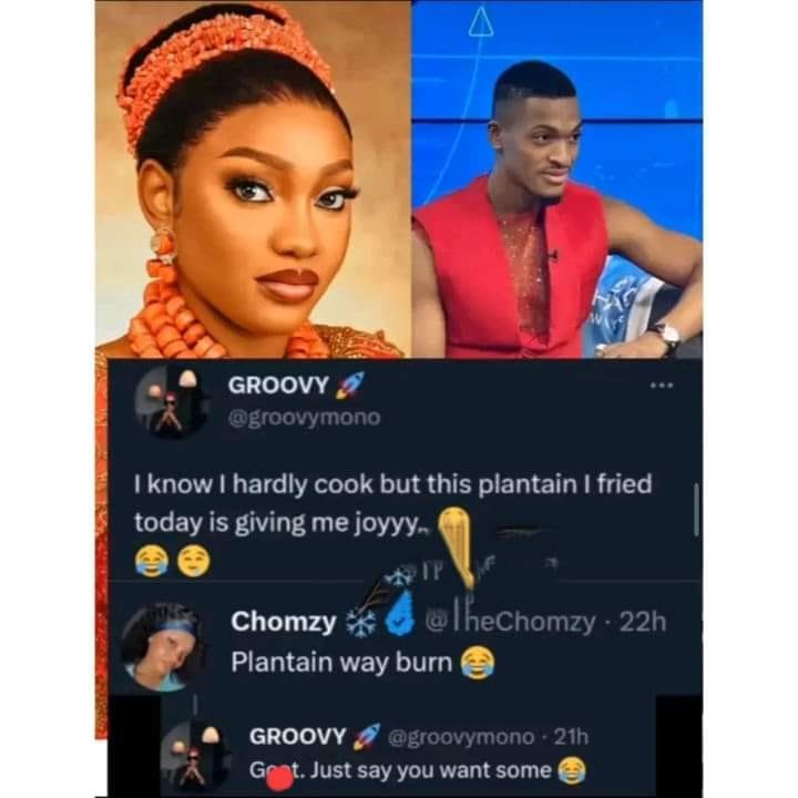 Groovy recently posted that he had successfully fried plantain. He was most likely frying plantains at home. Chomzy replied, “Plantain that got burned.” Fans have questioned her response with skepticism.