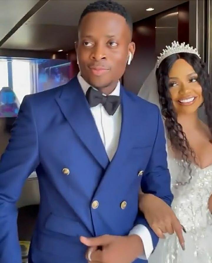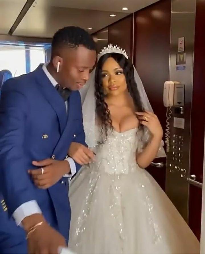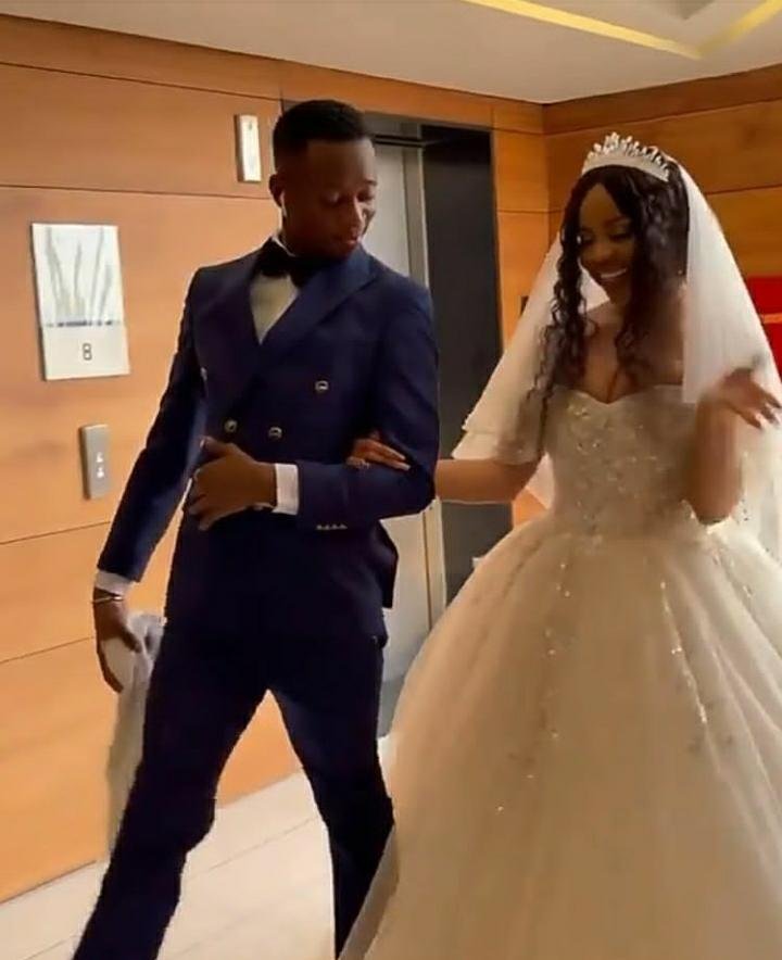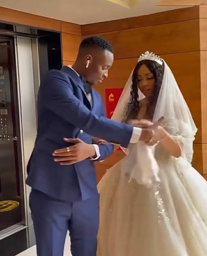 Nengi acting as a bride in Syndey Talker’s comedy skits is looking nice and lovely in her gown after saying ‘Yes’ to his proposal.