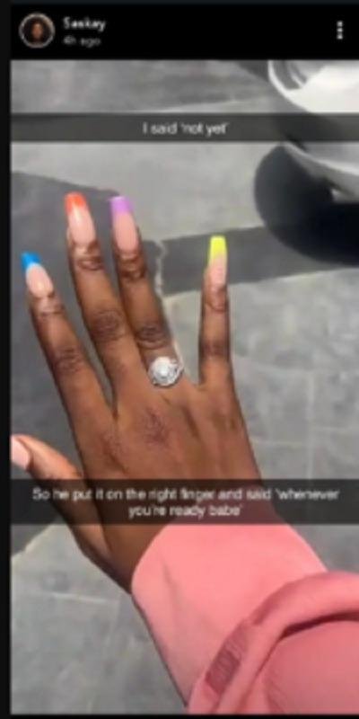 Saskay, a BBNaija star, has been enegaged to the love of her life. The reality actress made the revelation on her Snapchat channel, revealing that she told her lover she wasn’t ready for marriage, but he nevertheless put the ring on her finger.