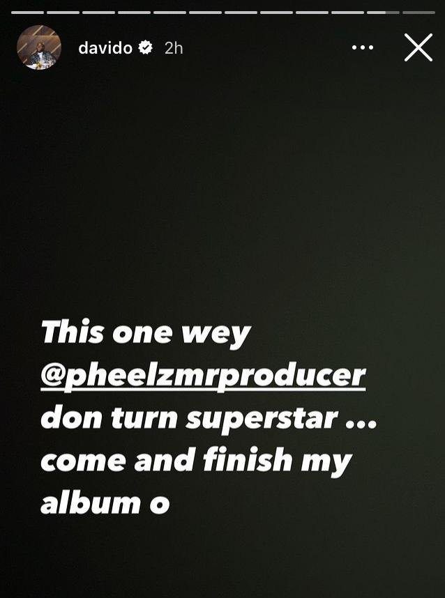 This was revealed when Davido Music Worldwide CEO and multi-award-winning musician Davido took to his official social media page to praise brilliant Nigerian music producer Pheelz.