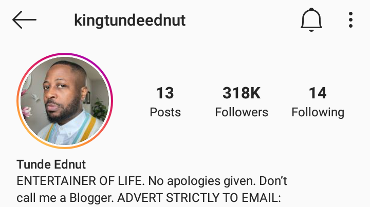 Recall Tunde Ednut was recently allover the news after his account with millions of loyal followers got deactivated by Instgram for violating the app’s terms and conditions.