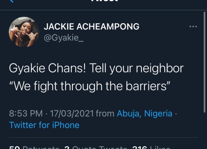 According to Gyakie in a tweet, her fanbase should be referred to as “Gyakie Chans”. This name doesn’t come as a surprise as it was expected.