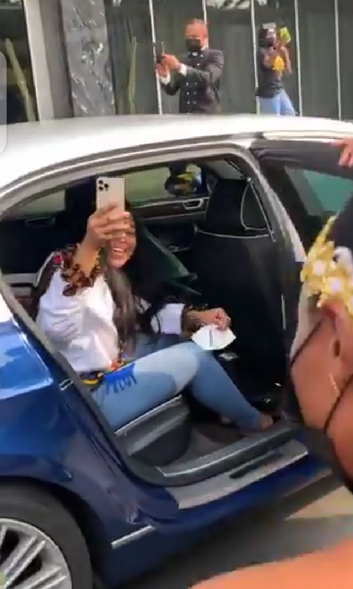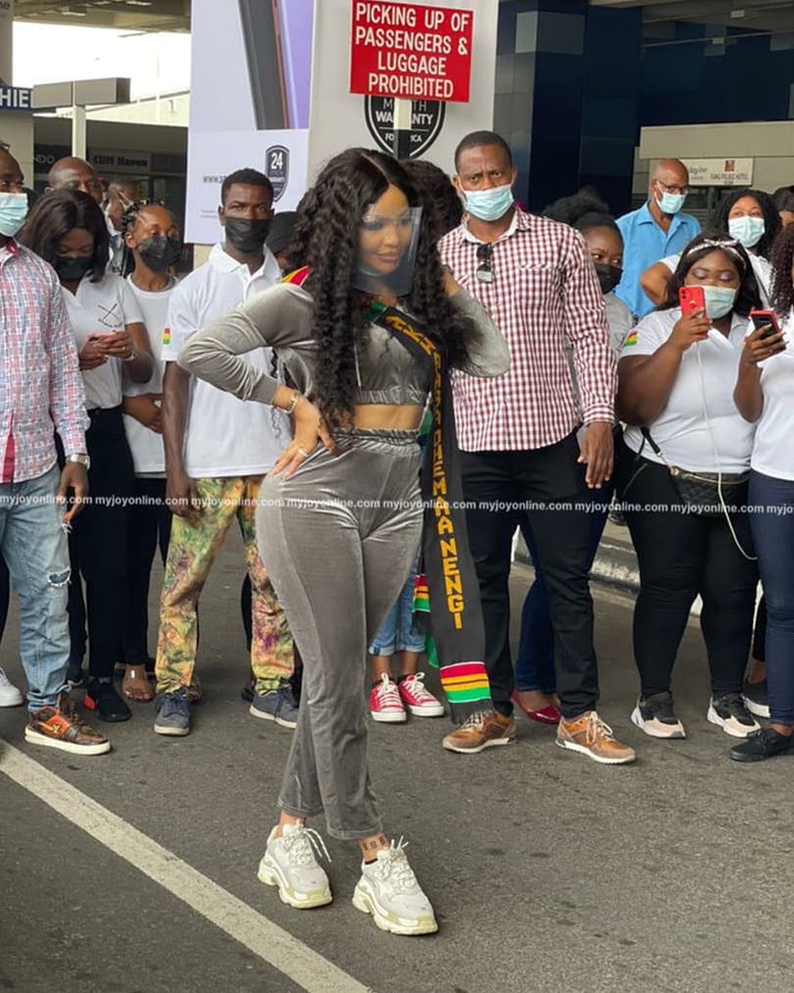 View pictures in App save up to 80% data.Just like Erica, Nengi also came to Ghana, and as we all know that Nengi has a very huge fan base, she was welcomed by many people. She donned a grey sweat shirt and came in grand style. When she arrived at the airport, a lot of fans came out to welcome, that she was even surprised at the turn up. When she arrived at the airport, a fan hurriedly gave her a customized sash which was made with a Ghana clothing material known as ” Kante”. Infact after the huge turn up Nengi received today, some people even started accusing her of hiring people to come and welcome her. After Nengi had been welcomed by her fans at the airport, she left with a convoy of exotic cars such as Range Rover, Rolls Royce and a Prado Jeep.