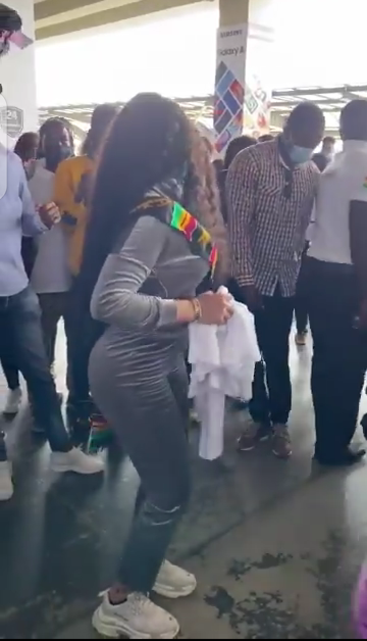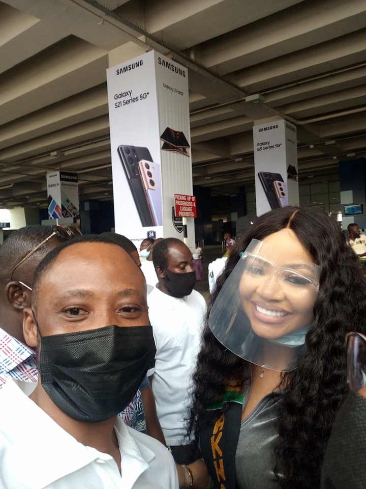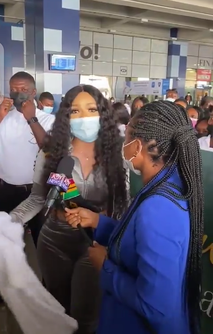 When Erica came to Ghana, she was welcomed by her many fans who were very excited to see her. Erica came to Ghana on the 20th of January. On the day she arrived at Ghana, she donned a white sweat shirt which looked very costly, and matched it with a blue jean trousers and a black pair of shoes. Her fans stormed the airport which they knew she would be in, to the extent that she almost wanted to run, when she saw the crowd of people approaching her.
