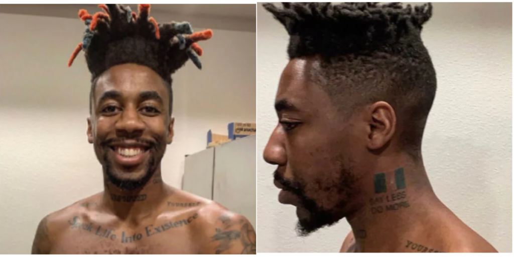 The rapper got a tattoo of the Nigerian flag on his neck with the inscription ‘say less, do more’ as a sign of connection to his Nigerian roots