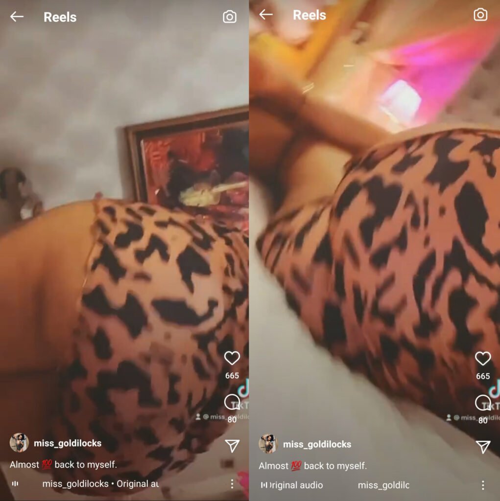 Tboss’ sister showcased her curves from different angles while lying on her bed and also sashaying across her room.