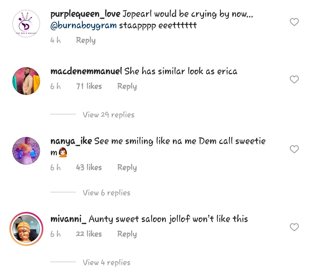 Jolearl’s lovers expressed their concerns about the heartbreak she would be going through after being dumped by Burna Boy the African Giant.