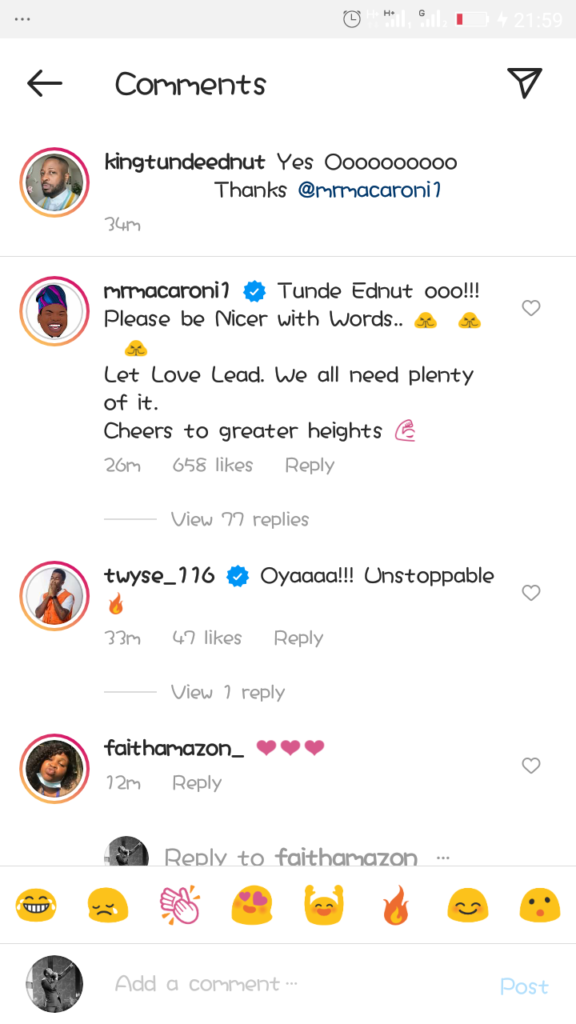 Mr. Macaroni Advises Tunde Ednut As He Returns To Instagram-“Be Nicer With Words”