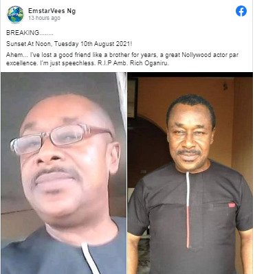 Ahem… I’ve lost a good friend like a brother for years, a great Nollywood actor par excellence. I’m just speechless. R.I.P Amb. Rich Oganiru.