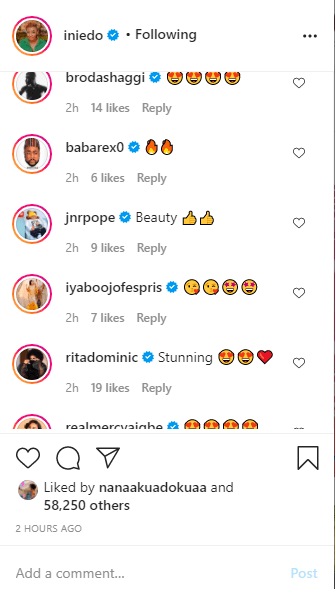 Ini Edo has got reactions from her colleagues, including Rita Dominic, Nonso Diobi, Broda Shaggi, and others after sharing a new stunning photo of herself on social media.