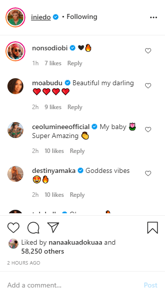 Her colleagues, including Rita Dominic, Nonso Diobi, Destiny Amaka, Mercy Aigbe, Iyabo Ojo, Broda Shaggi, Baba Rex, amongst others trooped to the comment and complimented her.