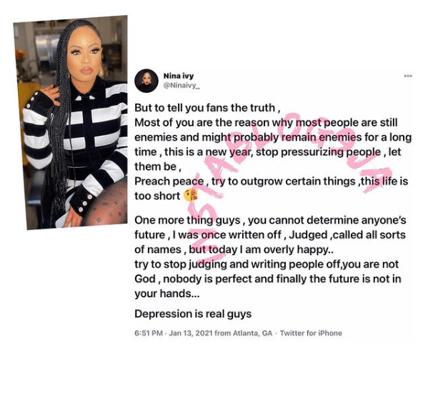 Nina who spoke from Atlanta said fans are the reason why most celebrities become sworn enemies.