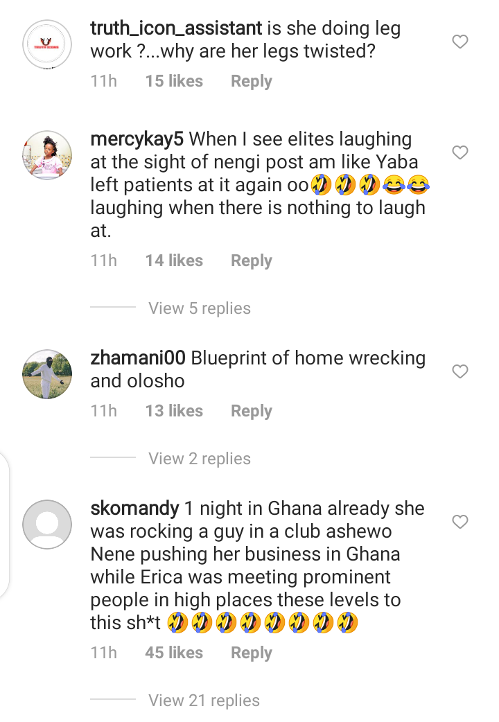 Nengi who went to Ghana days after Erica came back from her vacation in Ghana as well. Nengi was dragged for copying Erica in the first place, as Nengi fans trends the hashtag ‘Nengi Tour Ghana’, the Elites also trend the hashtag ‘Erica Nah Your Mama’.[wp_ad_camp_2]