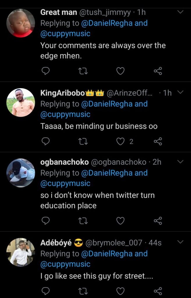 Many of her Fans were expected to threw in advances towards her, another man who thinks she ought to be educating her fans instead of catching cruise online, took it upon himself to drag her for such thing as he asked her to stop that, but say educative things so her fans can learn from.