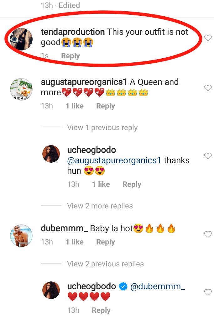 Many of her fans has reacted Hours after Uche Ogbodo posted the photos on her Instagram page, many dropped some lovely comments while others critizied her outfit. One of her fans revealed that her outfit is not good, “This your outfit is not good” while another fan said that she should not confuse the priest with her outfit.