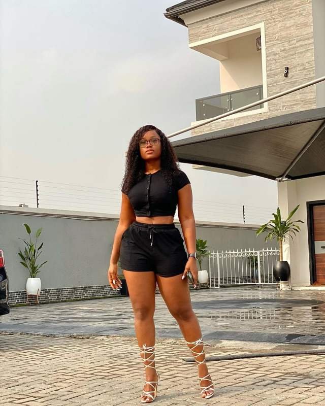 She forget waist trainer for house…wahala for who social media deceive & e no go better for photographer wey de crop their belle comot when editing pictures