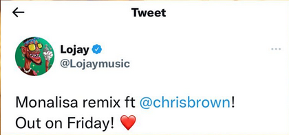 Lekan Osifeso Jnr., better known as Lojay, a rising Nigerian talent, will release a remix version of his “Monalisa” song with American singer Chris Brown.