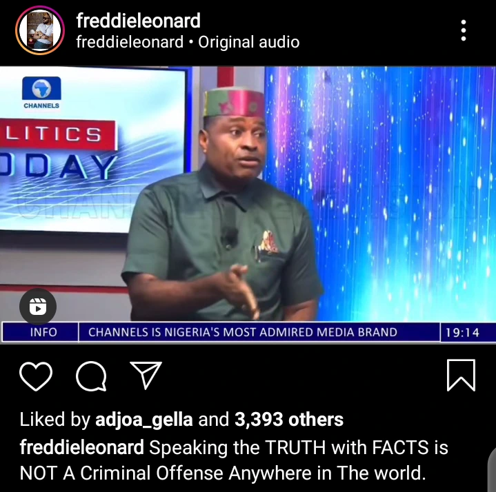 “Speaking the truth with Fact….” – Freddie Leonard React To Kenneth Okonkwo Interview on Channels TV (Video)