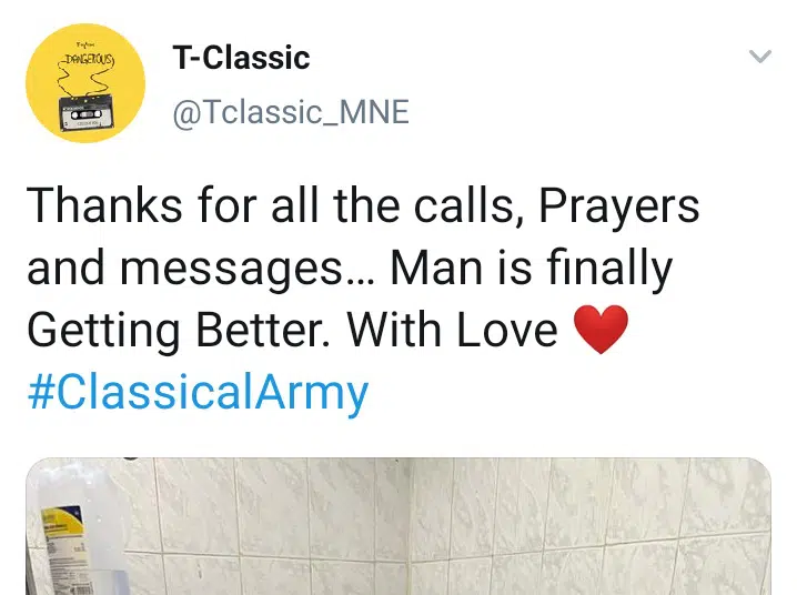 “Thanks for all the calls, Prayers and messages… Man is finally Getting Better. With Love ❤️ #ClassicalArmy.”