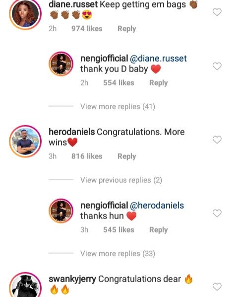 There were several congralatory messages from her Fans and fellow housemates. See some of the reactions below.