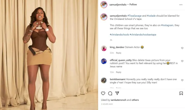 Samuel Jemitalo, a Nigerian film producer, believes that Tiwa Savage and Oxlade, two Nigerian superstar singers, should be held responsible for the se.x tape saga involving underage students at Chrisland School.