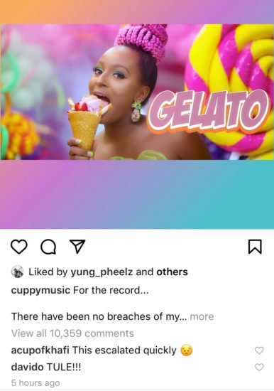 Well, Davido took to her Instagram comment to react to the post. As is the trend with the DMW crew, Davido dropped a ‘tule’ as his comment, suggesting the Jollof On The Jet crooner let Isreal be.
