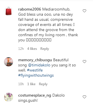 One of the remarkable moment during the party was when talented singer and songwriter Timi Dakolo performed the song ‘ Flying without wings’ in honor of RMD.