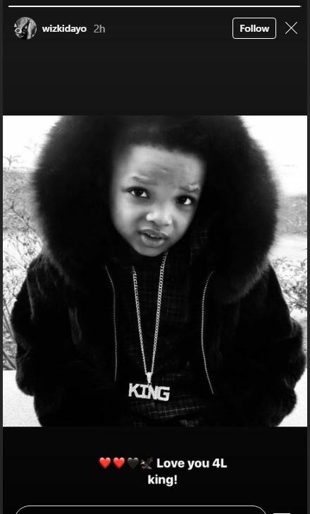 Wizkid had his son with Binta Diamond and 5 years down the line, he took to his social media page and shared an adorable picture of his boy with the caption, “Love you, 4L King!”.