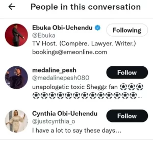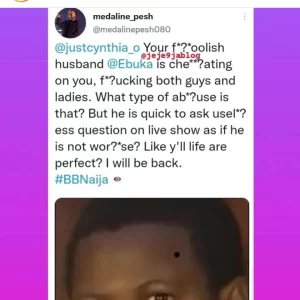 The troll told Ebuka’s wife that her husband was cheating on her by sleeping with both men and women. However, he mocked Sheggz and Bella.